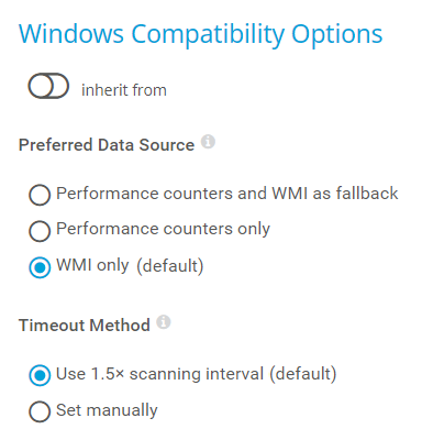 Sensors that monitor via Windows Management Instrumentation (WMI) always wait at least one scanning interval before they show the Down state. It is not possible to immediately set a WMI sensor to the Down state, so the first option does not apply to these sensors. All other options can apply.