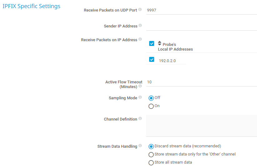 IP address of the sending device. Use this if you have several devices that send flow data on the same port, and you want to divide the traffic of each device into a different channel.