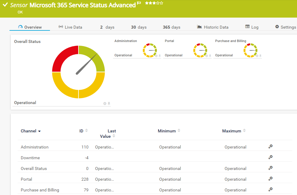 Due to changes in the Microsoft 365 Management APIs, this sensor cannot create service channels anymore.