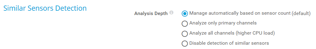 Define the number of channels that PRTG analyzes to detect similarities between sensors, or disable the analysis. The analysis depth depends on the total number of sensors you have.