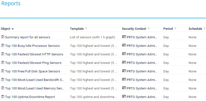 PRTG provides several preconfigured reports that you can also edit or delete.