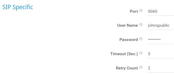 If the connection to the SIP server fails, the sensor tries to connect again. Enter the maximum number of retries. After the sensor reaches the maximum count, it shows the Downstatus. Enter an integer.