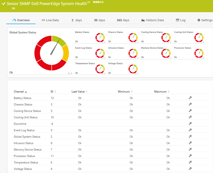 This sensor requires the Dell OpenManage Server Administrator (OMSA) tool to be installed on the target system. Make sure that you enable SNMP in the OMSA.